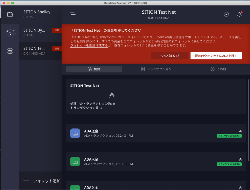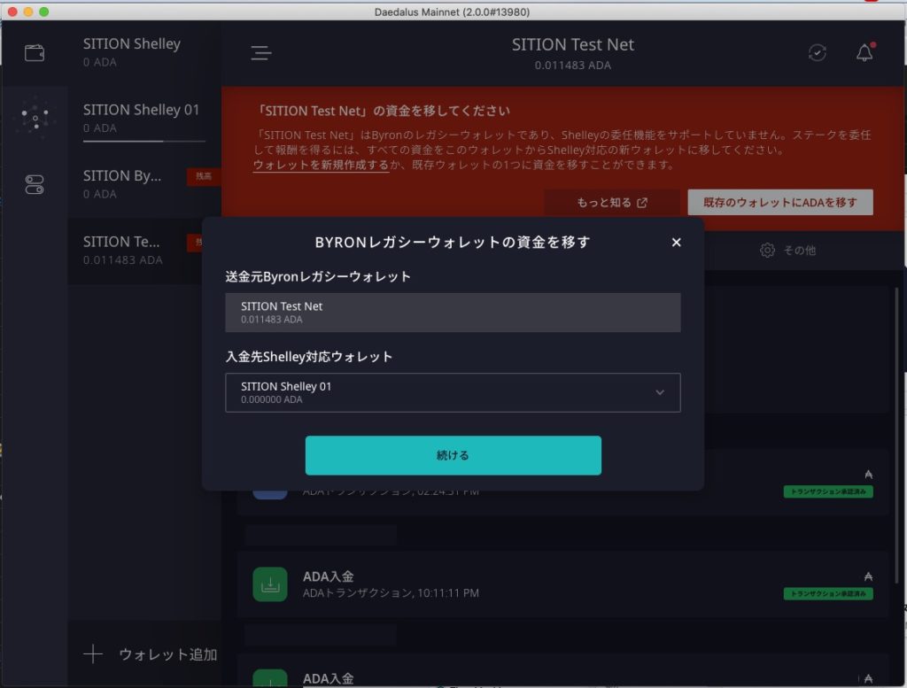 Byron時代からのADAホルダーの方は、Biron時代のADAをShelleyウォレットへの移行することによって、ステーキングが可能になります。