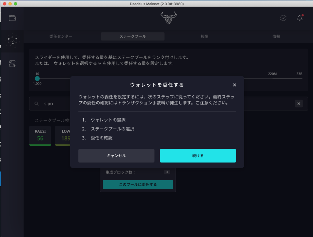 委任ウィザード画面に、選択したプールにそれ以上委任をすると過剰飽和する場合、警告メッセージが表示されるようになりました。