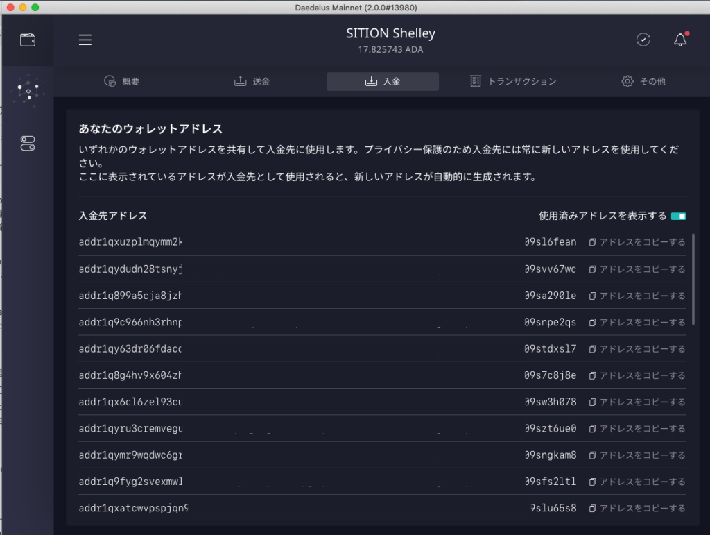 最終的にADAを24語パスフレーズによるShelleyウォレットで管理することを目指しています。