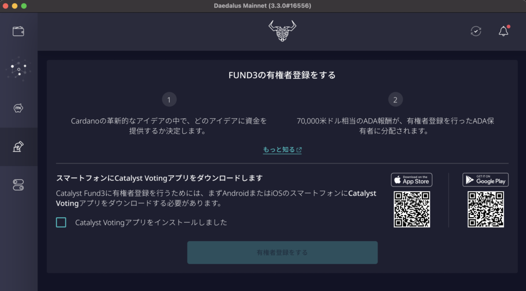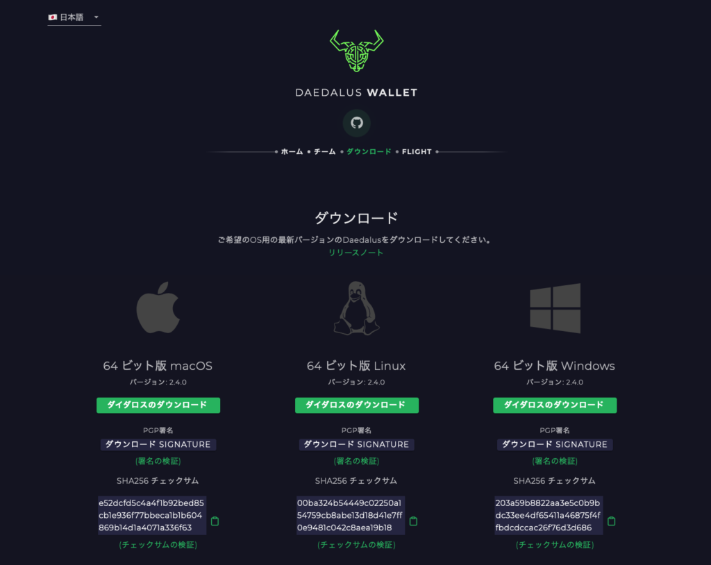 メインネット用Daedalus最新版はダイダロス公式サイトからダウンロードできます。