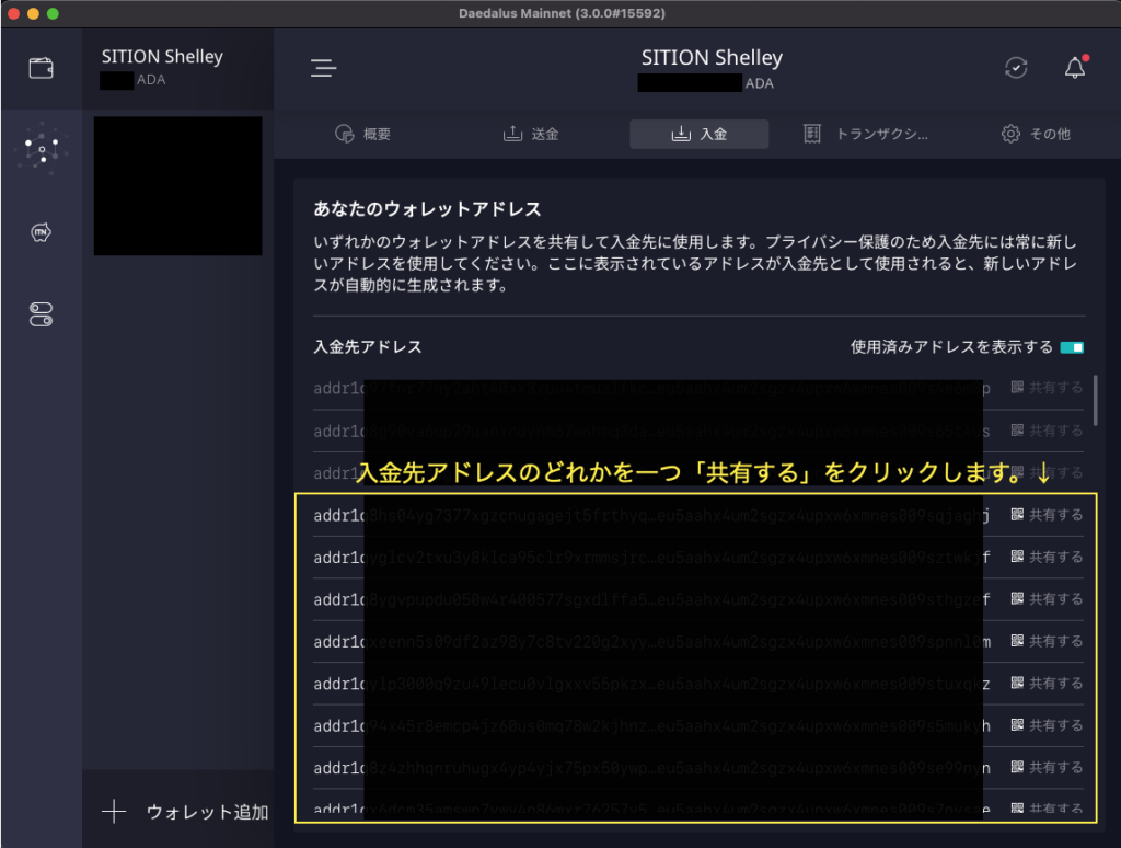 ステップ2:Shelleyメインネット用ウォレットの新規作成