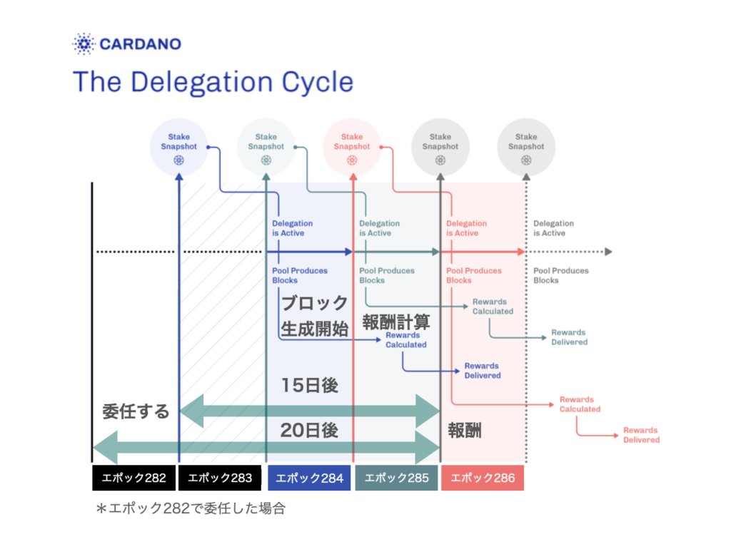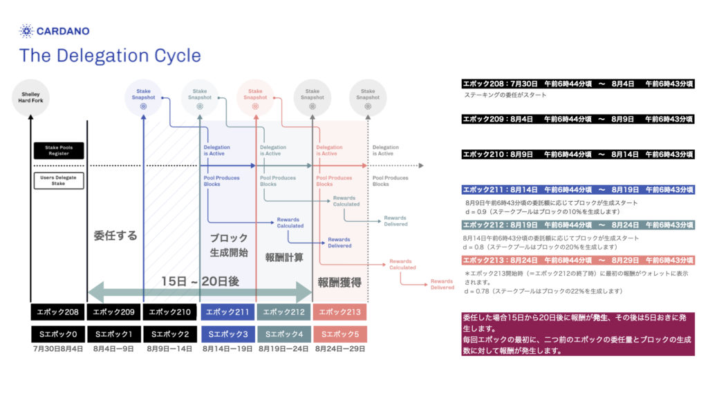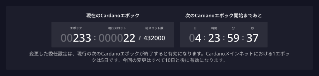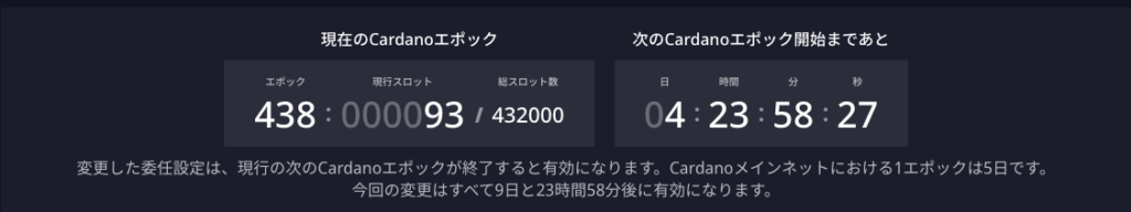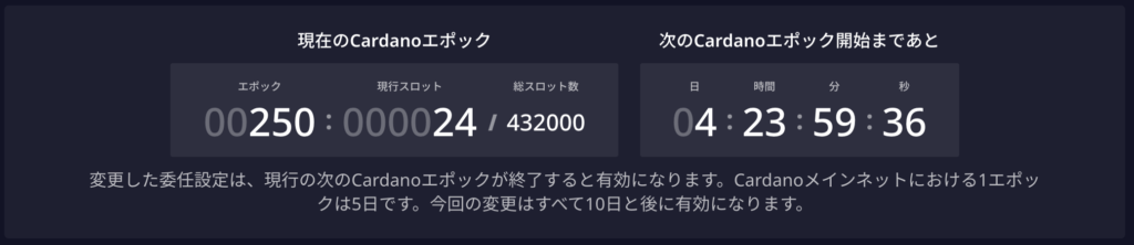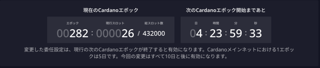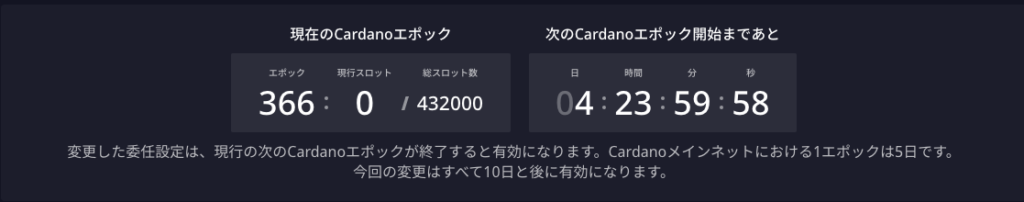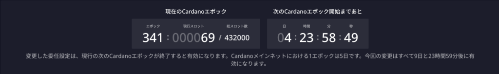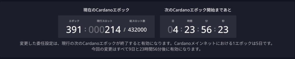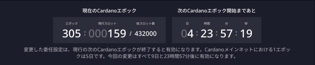 1エポックは、5日間となり、ステーキング報酬は5日毎になります。