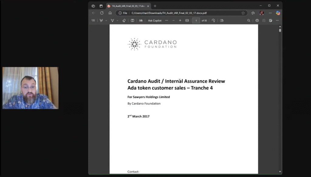 現在、SNS上では「ADAが盗まれた」「資金が不正に回収された」といった誤った情報が拡散しています。それに対しホスキンソン氏は、「盗難」ではなく、適切な法的・技術的手順に基づく未完のリデンプション対応だったと明言し、事実を明らかにする監査報告書の公開準備を進めていることを明かしました。