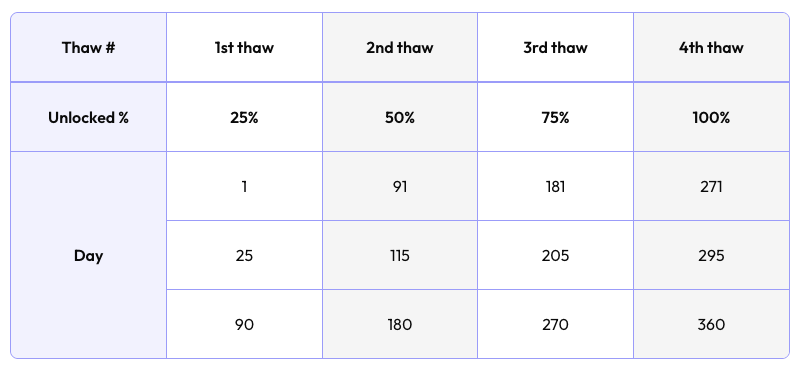 - 以降90日ごとに25%ずつ追加解凍(最大360日間)