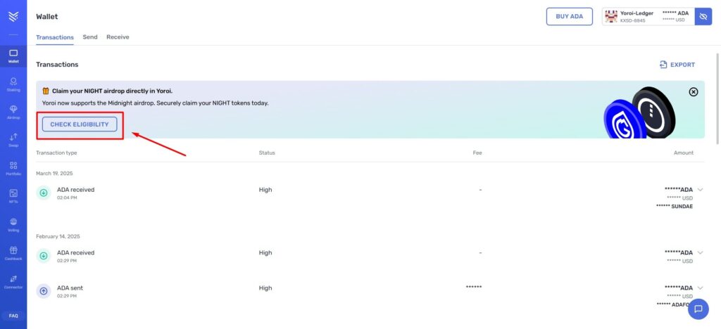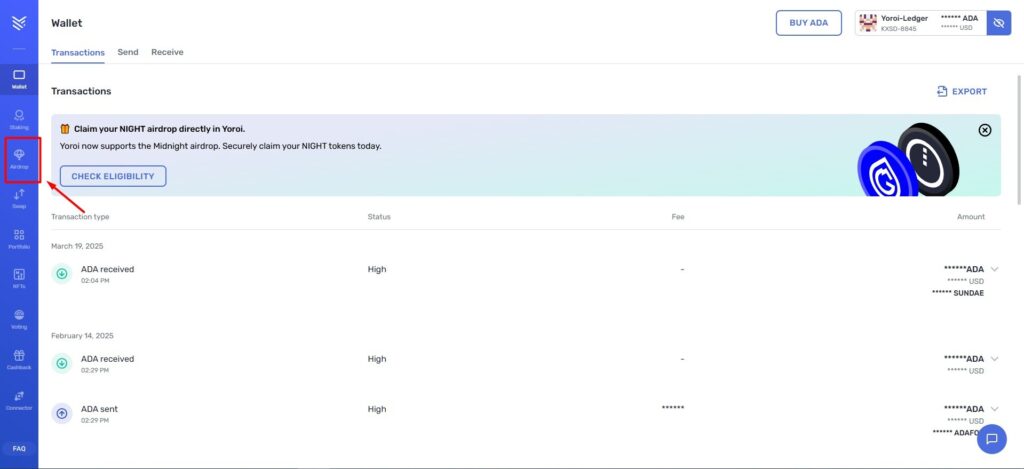- ハードウェアウォレット:Ledgerを利用する場合は、LaceやYoroiとペアリングすることでADA請求が可能