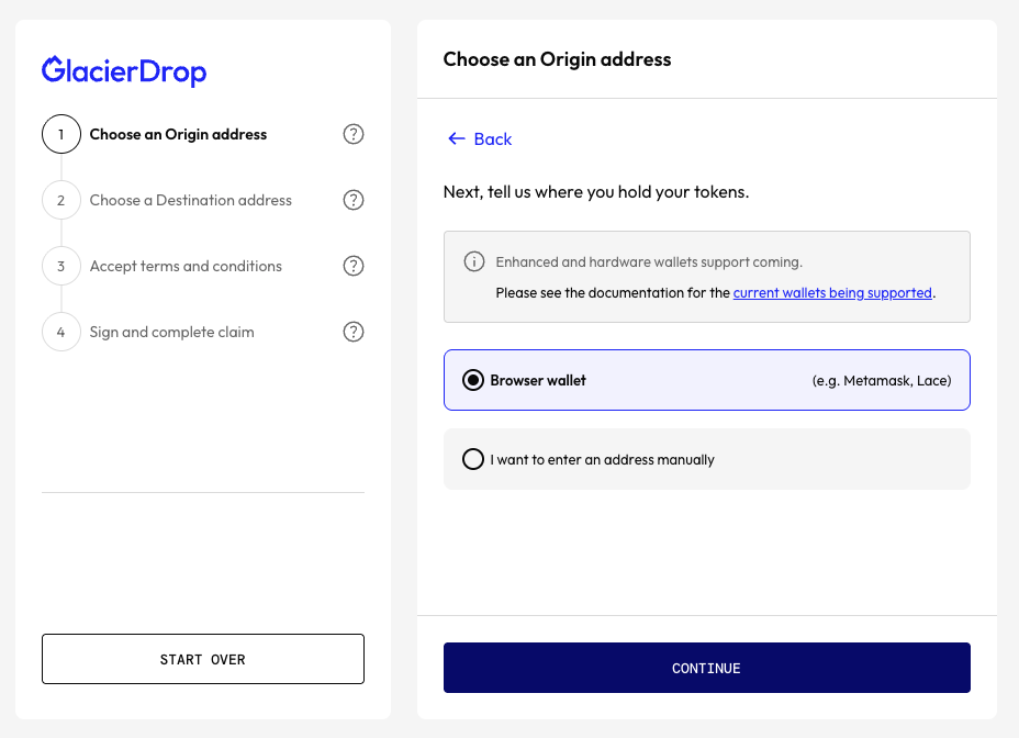 👉 この3点をクリアしていれば、Glacier Dropに参加できる準備は整っています。次のステップでは、実際にウォレットの対応状況や「Destinationアドレス」の条件を確認していきましょう。