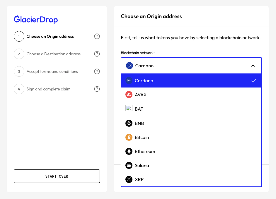 Glacier Dropに参加できるのは、以下の8つのブロックチェーンのネイティブトークン保有者です。