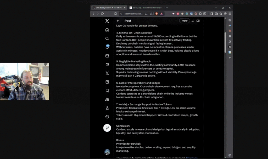 ――つまり、私が最近のポッドキャストで、カルダノのユーザーがDeFiの苦戦に寄与していると示唆した、というものです。