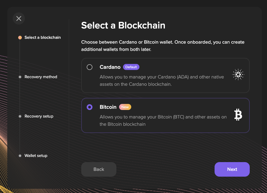 新しいオンボーディングフローでは、CardanoとBitcoinのウォレットを1つの画面からまとめて作成できるようになりました。