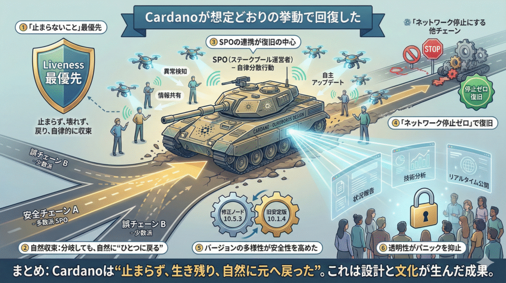 Cardanoの「止まらない設計(liveness優先)」が、そのまま発揮されました。