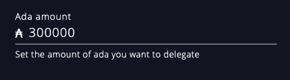 青色で選択している状態であれば、その下にある「Ada amount」のところに、ステーキングしたいまたは保有しているADAの量を入力してみてください。