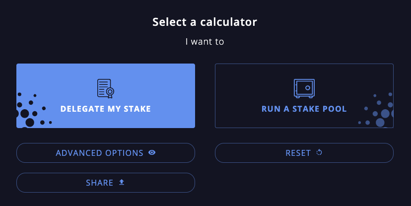 このページの中段の方に「DELEGATE MY STAKE」という文字が青で選択された状態で表示されています。これは委任によって得られる報酬を計算します。
