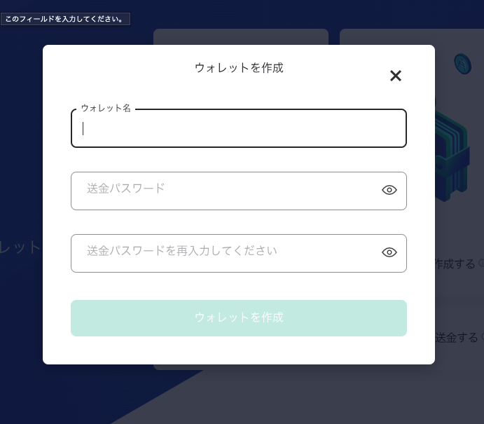 - Wallet name(ウォレット名): ユーザーがウォレットを識別するための名前を入力します。