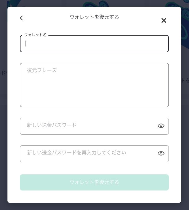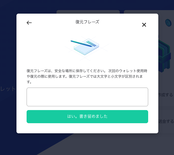 - リカバリーフレーズを失うと、ウォレットを回復することはできません。