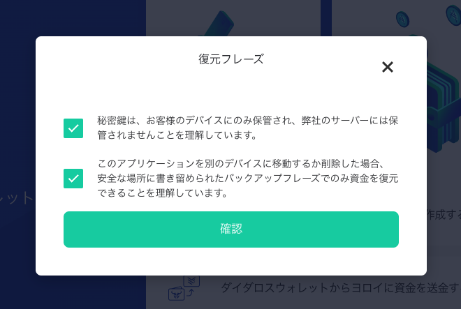 また、ヨロイで復元しても可能な場合は、ダイダロスウィレットも削除しないでそのまま厳重に保管しておくことをお勧めします。