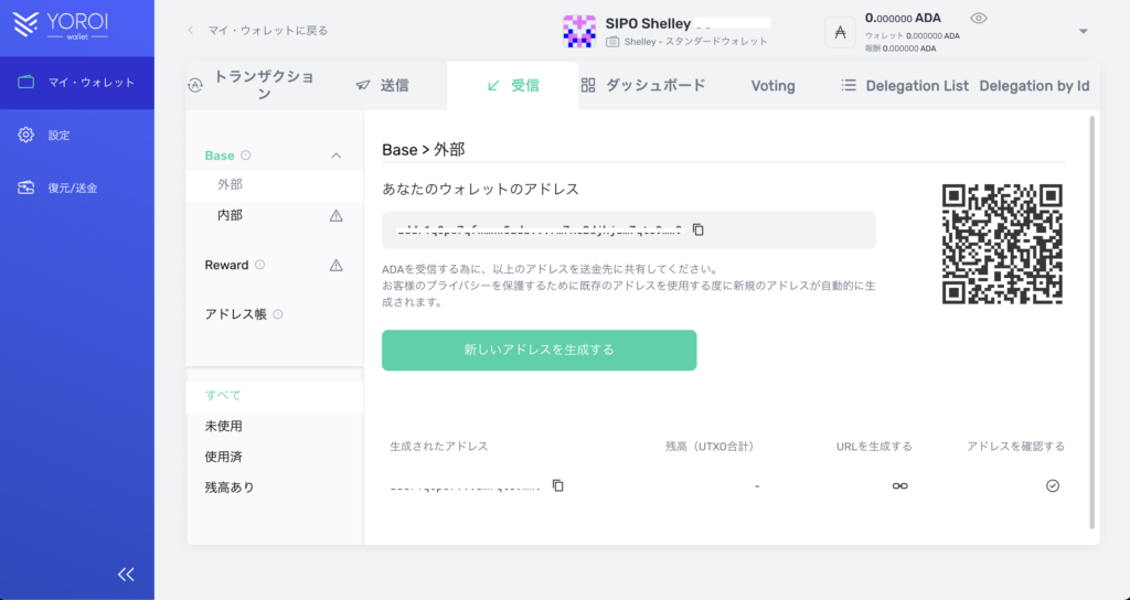 - アセットの受け取り: アセットを受け取るためには、ヨロイウォレットが生成するアドレスを送金者に提供します。