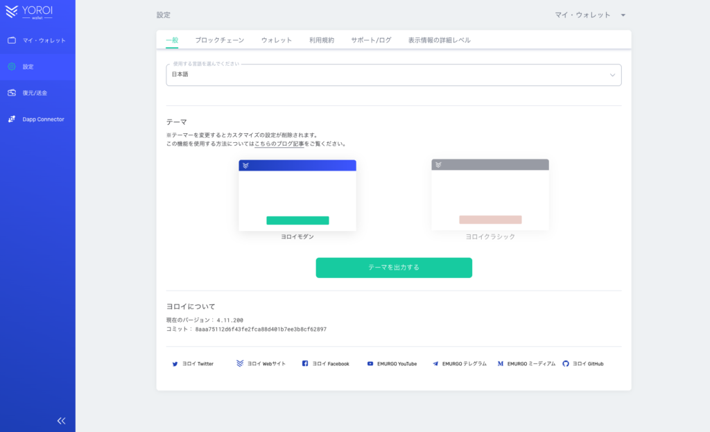 すでにインストールされている方は、自動的に更新されます。もし更新されない場合は、Yoroiのアイコンを右クリックし、「拡張機能を管理」を選択し、更新ボタンを押して、最新バージョンへアップデートしてください。バージョンは右のバーの「設定」から下記の画面を選んで確認できます。